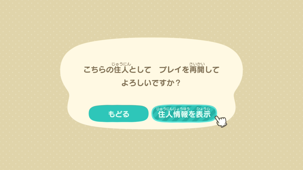 住人の ○○さんとして プレイを再開して よろしいですか?